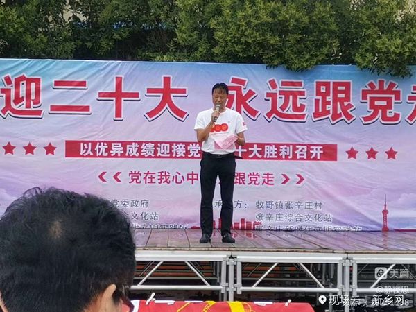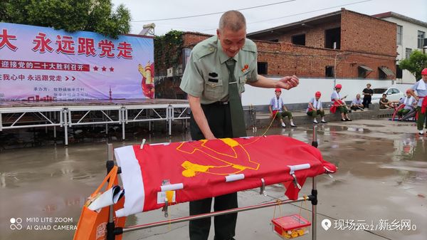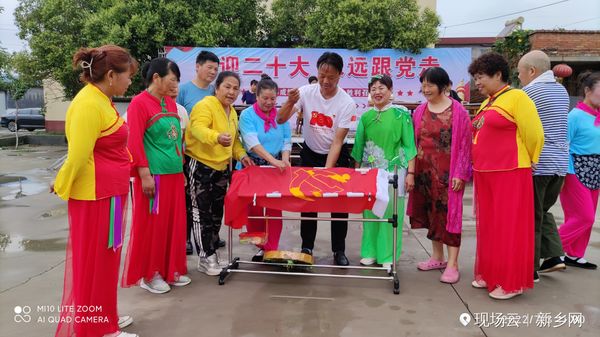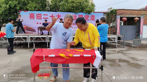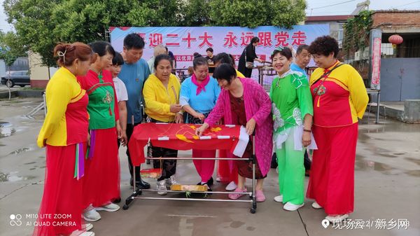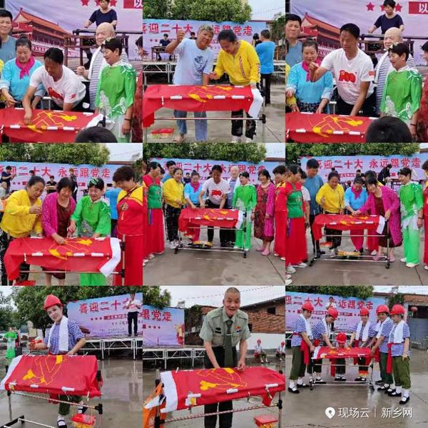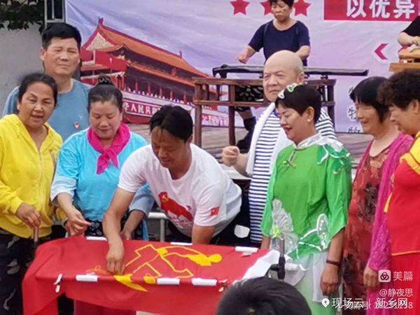 张辛庄村党支部书记贾明五率领村全体党员干部和入党积*分子,在鲜红的旗帜上一针一线认真绣着党徽,口里默念着入党誓词。之后,参加庆祝“党的二**召开 永远跟党走”的演职人员、村民们和参加“豫北党训班旧址筹备委员会"挂牌仪式的佳宾,分别都走进了这穿针引线的庄重、神圣与铭记。